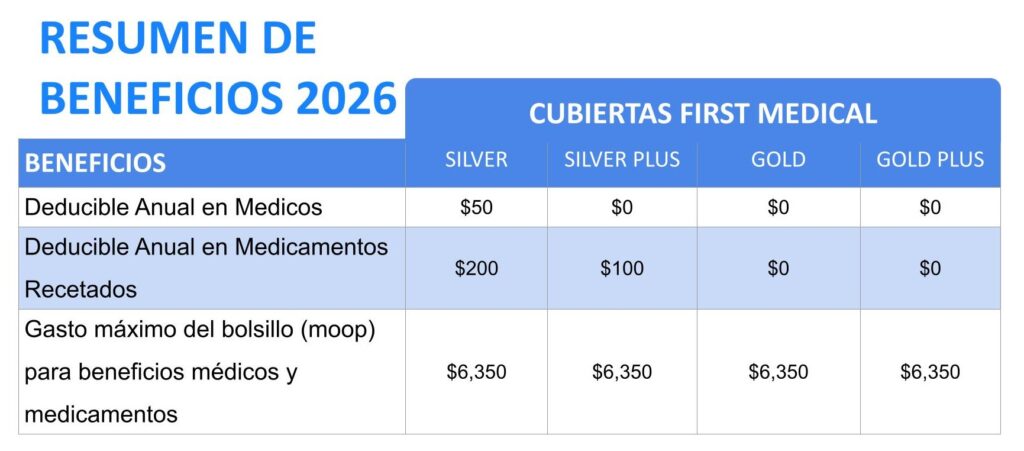 Nota: Estos beneficios son un resumen de su cubierta. Cualquier discrepancia o interpretación entre las partes, prevalecerá lo dispuesto en el contrato aprobado por la Oficina del Comisionado de Seguros de Puerto Rico.